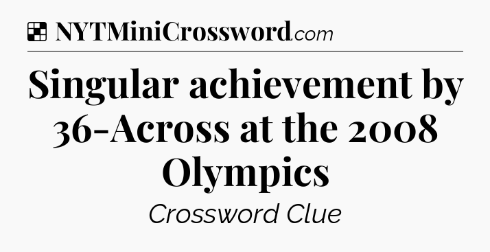 The clue “Singular achievement by 36-Across at the 2008 Olympics” most recently appeared in a NYT Crossword on September 3, 2008.