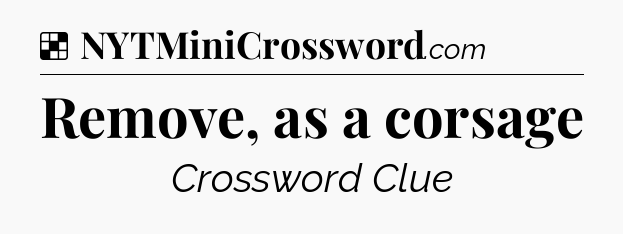 The clue “Remove, as a corsage” most recently appeared in a NYT Crossword on September 3, 2022.