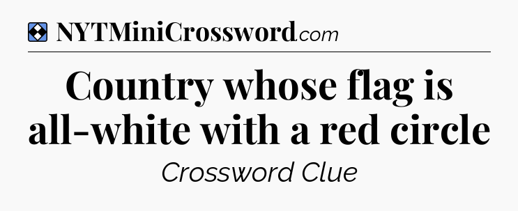 Looking for the answer to the Country whose flag is all-white with a red circle crossword clue from NYT Mini Crossword published on March 24 2023? You’ve come to the right place.