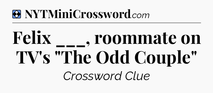 Looking for the answer to the Felix ___, roommate on TV’s “The Odd Couple” crossword clue from NYT Mini Crossword published on March 8 2020? You’ve come to the right place.