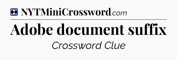 Looking for the answer to the Adobe document suffix crossword clue from NYT Mini Crossword published on September 21 2019? You’ve come to the right place.
