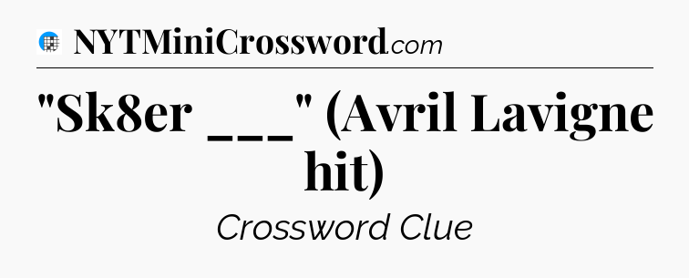 There is 1 possible answer for the crossword clue “”Sk8er ___” (Avril Lavigne hit)”.