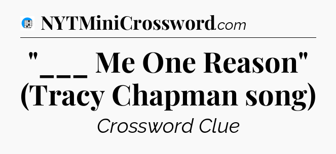 The clue “”___ Me One Reason” (Tracy Chapman song)” most recently appeared in a USA Today Crossword on January 13, 2024.