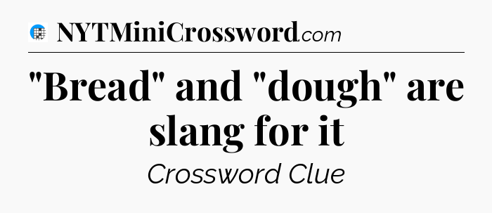 The clue “”Bread” and “dough” are slang for it” most recently appeared in a USA Today Crossword on January 14, 2024.