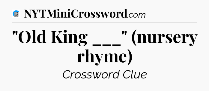 The clue “”Old King ___” (nursery rhyme)” most recently appeared in a USA Today Crossword on January 14, 2025.