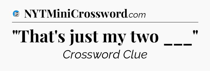 The clue “”That’s just my two ___”” most recently appeared in a USA Today Crossword on January 19, 2024.