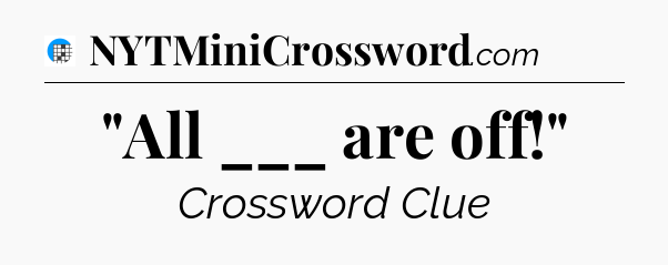 The clue “”All ___ are off!”” most recently appeared in a USA Today Crossword on January 19, 2026.
