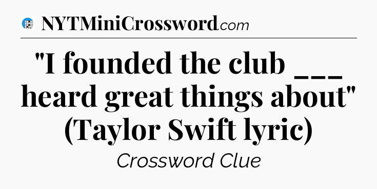 The clue “”I founded the club ___ heard great things about” (Taylor Swift lyric)” most recently appeared in a USA Today Crossword on January 21, 2026.