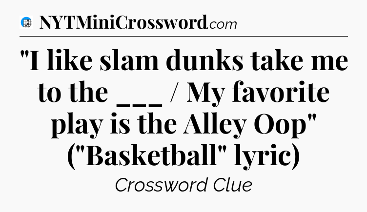 The clue “”I like slam dunks take me to the ___ / My favorite play is the Alley Oop” (“Basketball” lyric)” most recently appeared in a USA Today Crossword on January 24, 2025.
