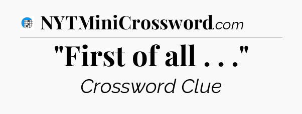 The clue “”First of all . . .”” most recently appeared in a USA Today Crossword on January 29, 2024.