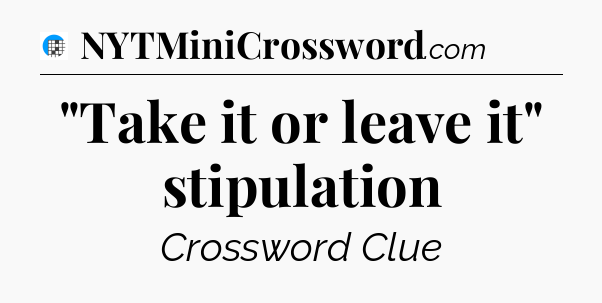The clue “”Take it or leave it” stipulation” most recently appeared in a USA Today Crossword on January 29, 2025.