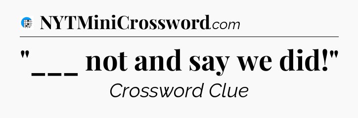 The clue “”___ not and say we did!”” most recently appeared in a USA Today Crossword on January 3, 2025.