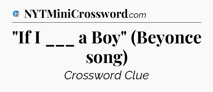 The Answer for “If I ___ a Boy” (Beyonce song) Crossword Clue is: