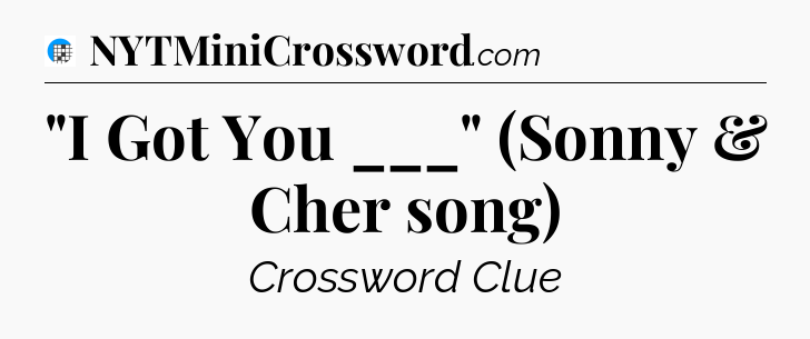 The clue “”I Got You ___” (Sonny & Cher song)” most recently appeared in a USA Today Crossword on October 10, 2025.