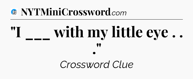 The clue “”I ___ with my little eye . . .”” most recently appeared in a USA Today Crossword on October 13, 2025.