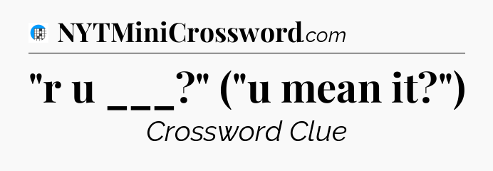 The Answer for “r u ___?” (“u mean it?”) Crossword Clue is:
