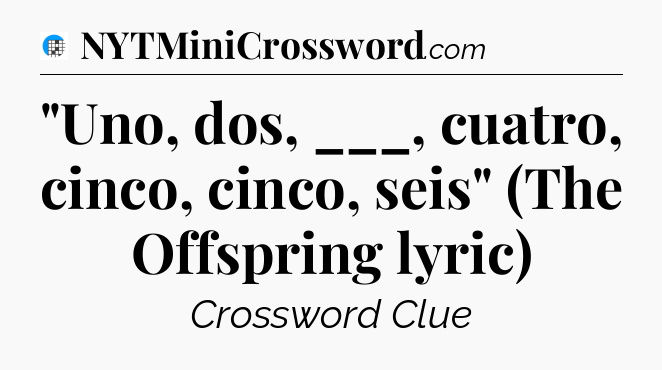 The clue “”Uno, dos, ___, cuatro, cinco, cinco, seis” (The Offspring lyric)” most recently appeared in a USA Today Crossword on October 13, 2025.