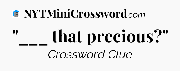 The clue “”___ that precious?”” most recently appeared in a USA Today Crossword on October 14, 2024.