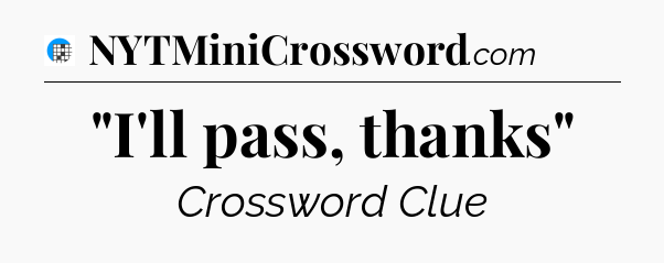 The clue “”I’ll pass, thanks”” most recently appeared in a USA Today Crossword on October 17, 2024.