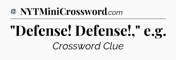 The clue “”Defense! Defense!,” e.g” most recently appeared in a USA Today Crossword on October 17, 2025.