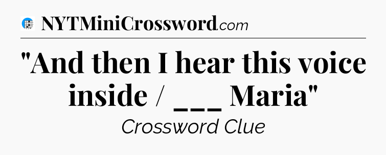 There is 1 possible answer for the crossword clue “”And then I hear this voice inside / ___ Maria””.
