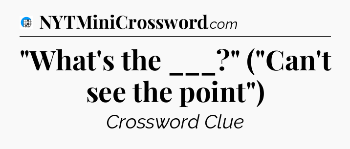 The clue “”What’s the ___?” (“Can’t see the point”)” most recently appeared in a USA Today Crossword on October 19, 2024.