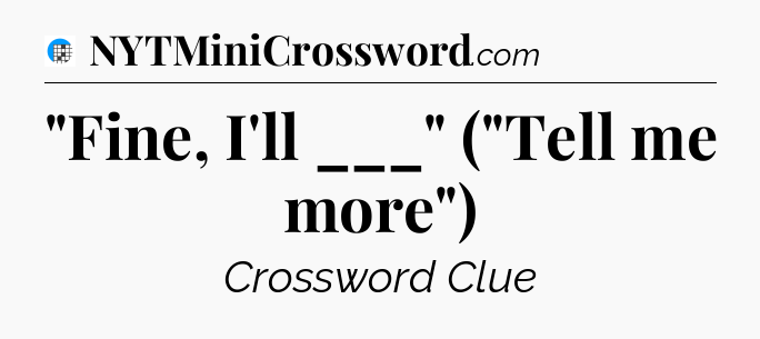 The clue “”Fine, I’ll ___” (“Tell me more”)” most recently appeared in a USA Today Crossword on October 20, 2024.