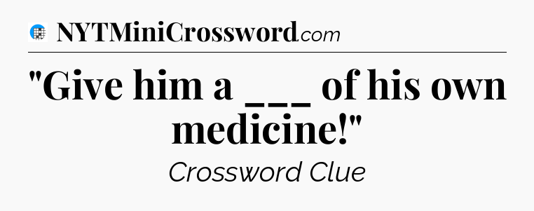 The clue “”Give him a ___ of his own medicine!”” most recently appeared in a USA Today Crossword on October 22, 2025.