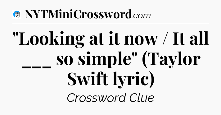 The clue “”Looking at it now / It all ___ so simple” (Taylor Swift lyric)” most recently appeared in a USA Today Crossword on October 22, 2025.