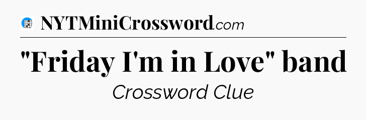 The clue “”Friday I’m in Love” band” most recently appeared in a USA Today Crossword on October 26, 2024.