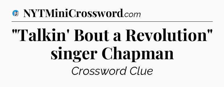 The clue “”Talkin’ Bout a Revolution” singer Chapman” most recently appeared in a USA Today Crossword on October 27, 2024.