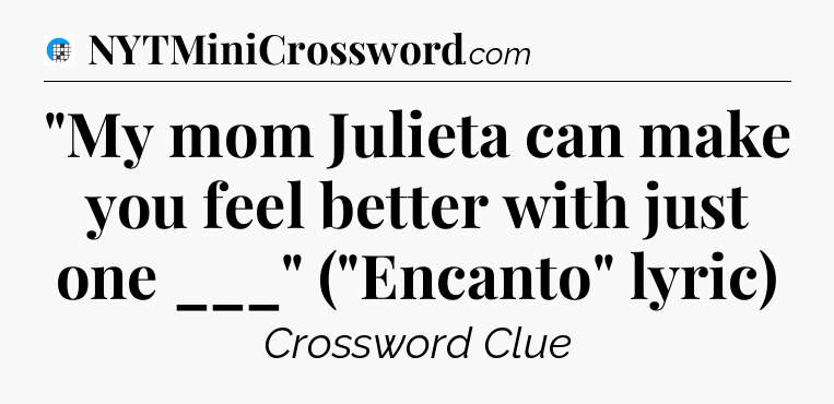 The clue “”My mom Julieta can make you feel better with just one ___” (“Encanto” lyric)” most recently appeared in a USA Today Crossword on October 30, 2025.