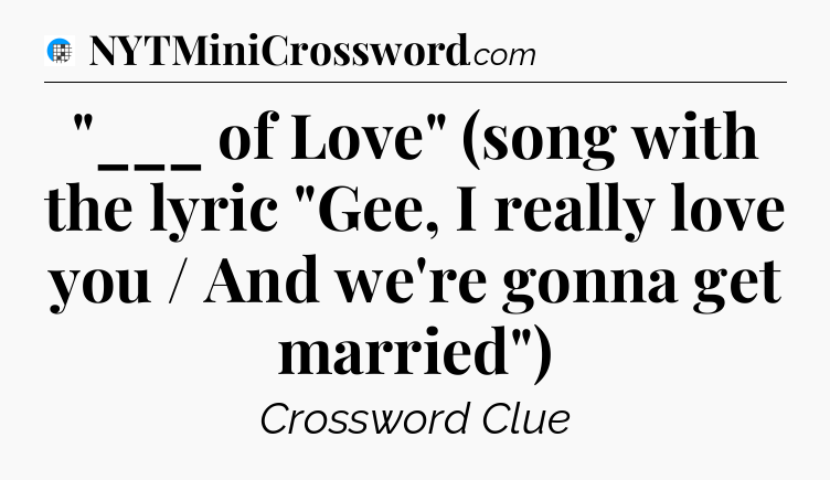 The Answer for “___ of Love” (song with the lyric “Gee, I really love you / And we’re gonna get married”) Crossword Clue is: