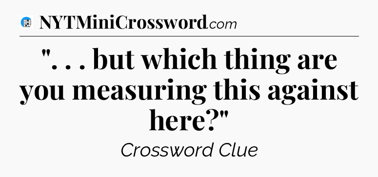 The clue “”. . . but which thing are you measuring this against here?”” most recently appeared in a USA Today Crossword on November 10, 2025.
