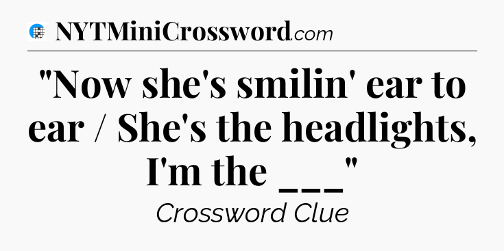 The clue “”Now she’s smilin’ ear to ear / She’s the headlights, I’m the ___”” most recently appeared in a USA Today Crossword on November 11, 2024.
