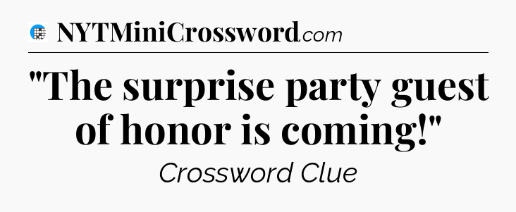 The clue “”The surprise party guest of honor is coming!”” most recently appeared in a USA Today Crossword on November 12, 2025.