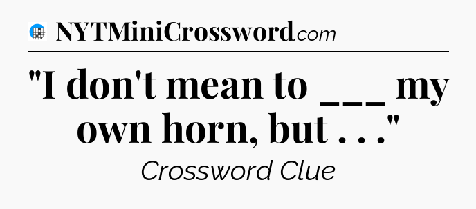 The clue “”I don’t mean to ___ my own horn, but . . .”” most recently appeared in a USA Today Crossword on November 13, 2025.