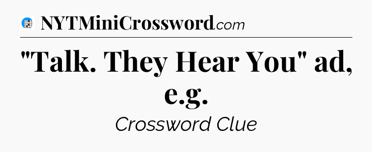 The clue “”Talk. They Hear You” ad, e.g” most recently appeared in a USA Today Crossword on November 14, 2023.