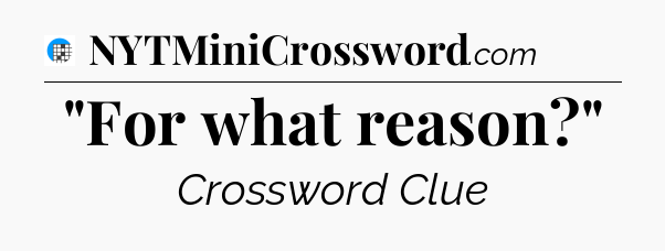 The clue “”For what reason?”” most recently appeared in a USA Today Crossword on November 2, 2023.