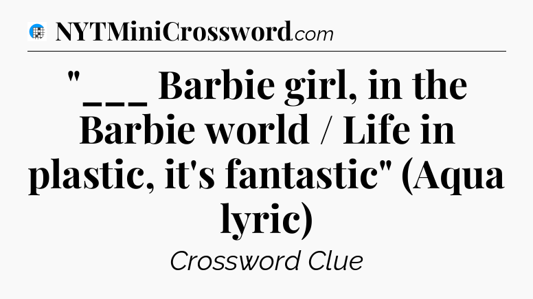 The clue “”___ Barbie girl, in the Barbie world / Life in plastic, it’s fantastic” (Aqua lyric)” most recently appeared in a USA Today Crossword on November 20, 2024.
