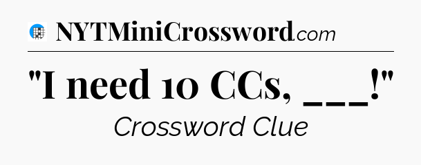 The clue “”I need 10 CCs, ___!”” most recently appeared in a USA Today Crossword on November 20, 2025.