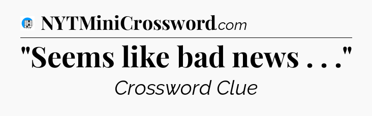 The clue “”Seems like bad news . . .”” most recently appeared in a USA Today Crossword on November 21, 2025.
