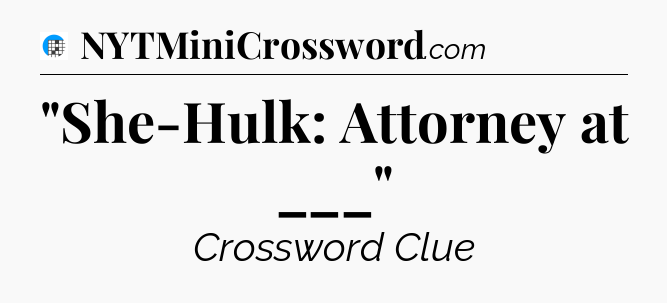 The clue “”She-Hulk: Attorney at ___”” most recently appeared in a USA Today Crossword on November 22, 2024.