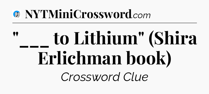 The clue “”___ to Lithium” (Shira Erlichman book)” most recently appeared in a USA Today Crossword on November 23, 2023.