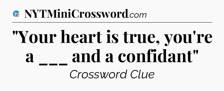 The clue “”Your heart is true, you’re a ___ and a confidant”” most recently appeared in a USA Today Crossword on November 23, 2023.