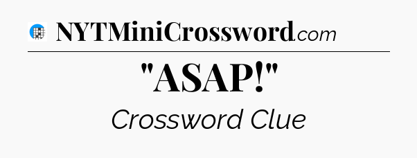 The clue “”ASAP!”” most recently appeared in a USA Today Crossword on November 30, 2023.