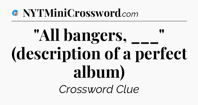 The clue “”All bangers, ___” (description of a perfect album)” most recently appeared in a USA Today Crossword on November 4, 2024.