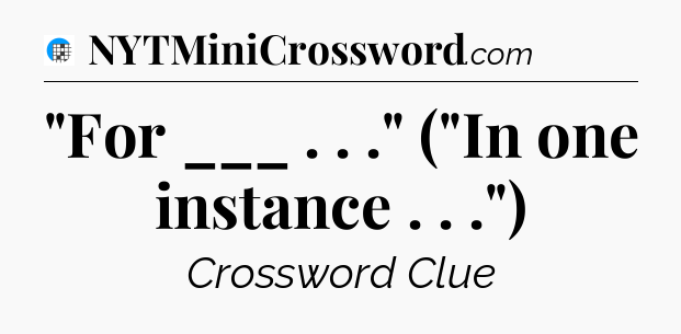 The clue “”For ___ . . .” (“In one instance . . .”)” most recently appeared in a USA Today Crossword on November 5, 2024.