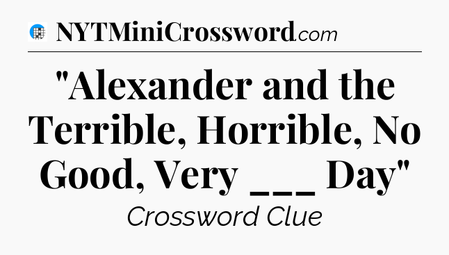 The correct answer to the crossword clue “”Alexander and the Terrible, Horrible, No Good, Very ___ Day”” is BAD.