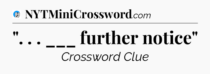 The clue “”. . . ___ further notice”” most recently appeared in a USA Today Crossword on December 12, 2024.